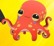Coba is a small red Octopus, with yellow spots, and one blue spot under each of his eyes.