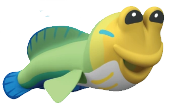 A fish with pretty colors, like yellow, green, and blue, and has a big mouth, similar to Blenny or The Mudskippers.