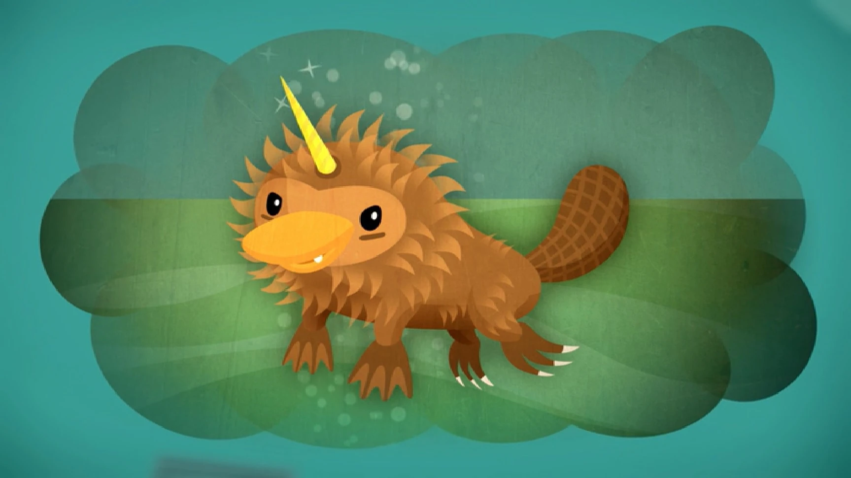 "'Tis a strange, slippery beast, that's said to lurk in Australian rivers, just like this one... It's made up of parts from different creatures - a bill like a duck, fur like a bear, webbed paws like an otter claws like a cat, a tail like a beaver, and worst of all - a sharp spiny stinger like a giant bumble-bee!.."
