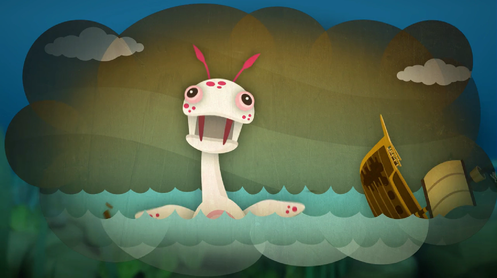 "He's as big as three whales set end to end, each tooth is the size of a dolphin. He's crafty, knocks over ships just for the fun of it, he does!.."