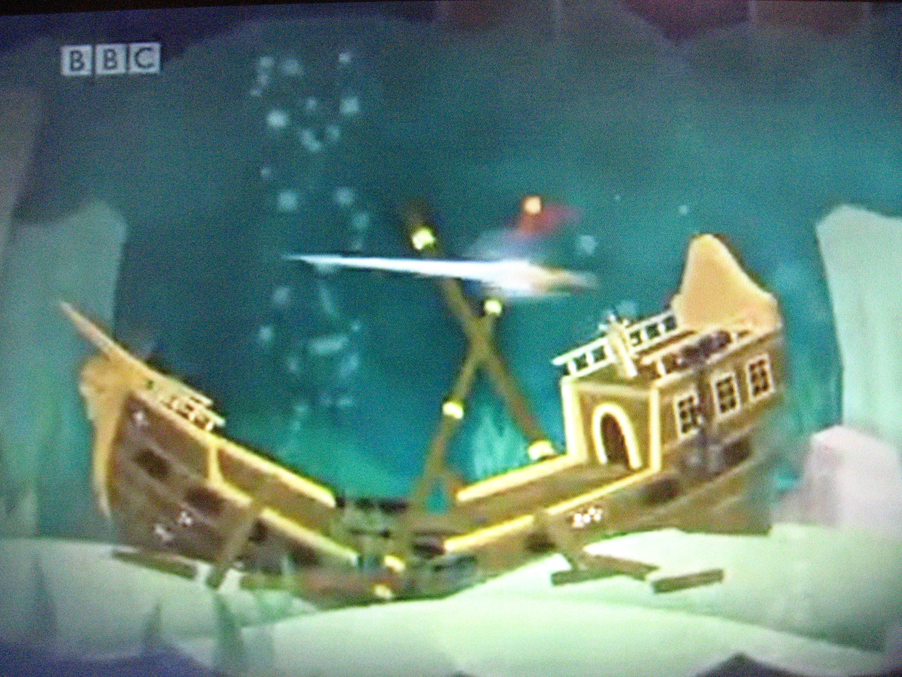 "A proud ship once sailed across these waters; the ship carried a precious golden jar. Then there came a terrible storm, and the ship sank to the bottom of the sea. There it lay until a scary sea monster made the wreck his home. He guards the golden jar to this very day, and if ye go looking for it, mateys, ye must beware of the eight-headed sea monster, for he'll challenge anyone who comes too close..."